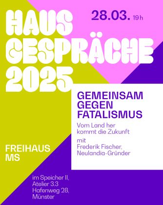 Einladung zum Hausgespräch "Gemeinsam gegen Fatalismus – Vom Land her kommt die Zukunft" mit Frederik Fischer, Neulandia und Marc-Stefan Andres, RUMS am 28. März 2025 um 19.00 h im Atelier 3.3, Speicher II in Münster