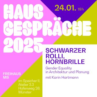 Einladung zum Hausgespräch "Raum, Begegnung, Handwerk – öffentlicher Raum im Fokus partizipativer Gestaltung" mit studio formagora und Santana Gumowski von Baukultur NRW am 21. Februar 2025 um 19.00 h im Atelier 3.3, Speicher II in Münster