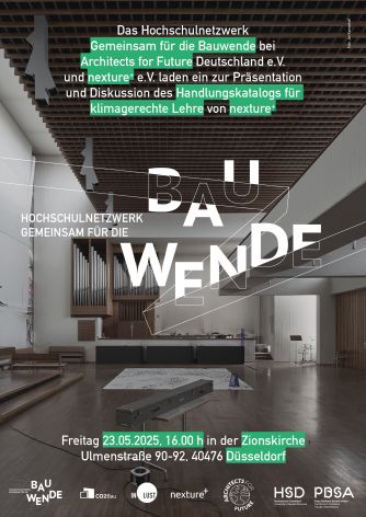 Das Hochschulnetzwerk "Gemeinsam für die Bauwende" und nexture+ e.V. laden ein zur Präsentation und Diskussion des Handlungskatalogs für klimagerechte Lehre.