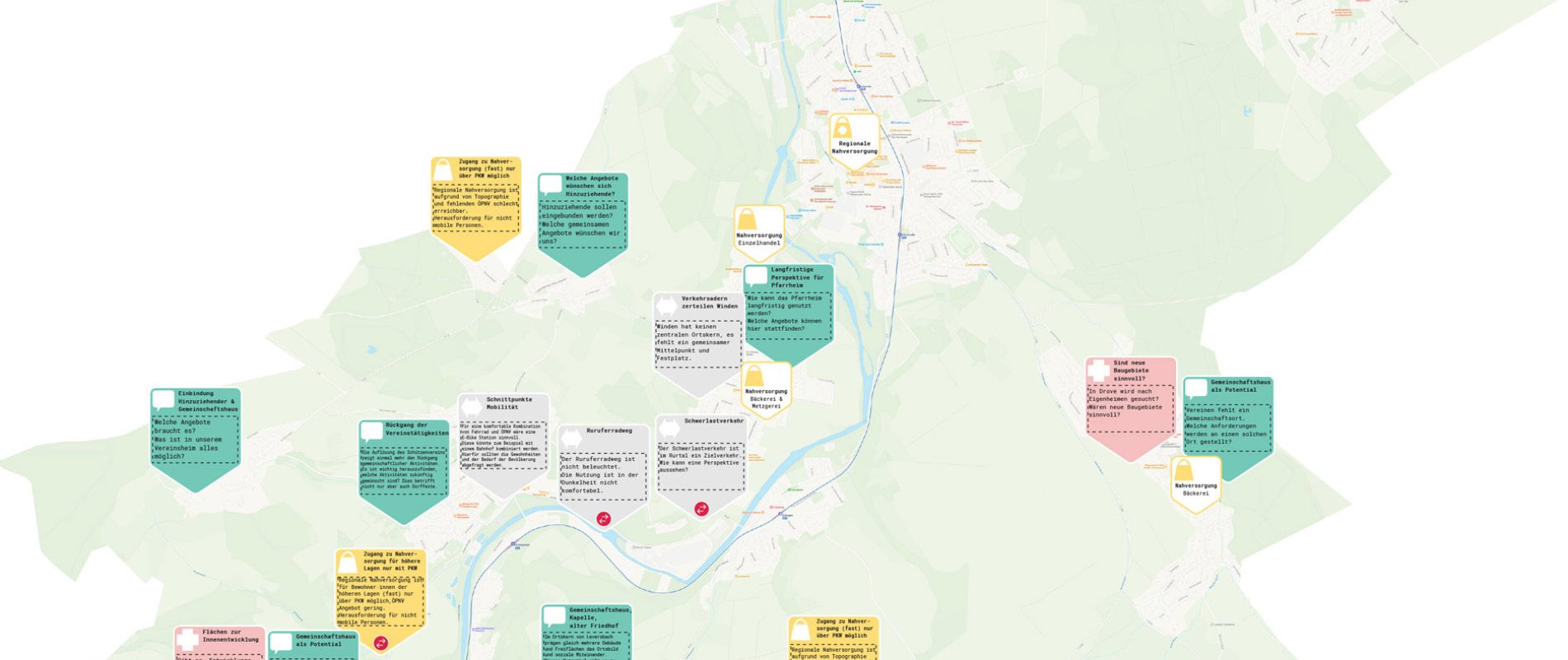 Wir freuen uns über eine Beauftragung zur Durchführung mehrere Ideenwerkstätten in der Eifelgemeinde Kreuzau. Wie viele andere Regionen auch, sind die umliegenden Ortsteile der Gemeinde Kreuzau vom Strukturwandel des ländlichen Raumes betroffen. Funktionsverlust durch den Rückzug der Landwirtschaft, Gestaltverlust durch Entwicklungen zum vorstädtischen Wohndorf, sowie der demografische Wandel kennzeichnen die Situation. Im gemeinsamen Dialog mit Bürgerschaft, Verwaltung und Politik sollen zentrale Handlungsfelder für die einzelnen Ortsteile gesucht werden.