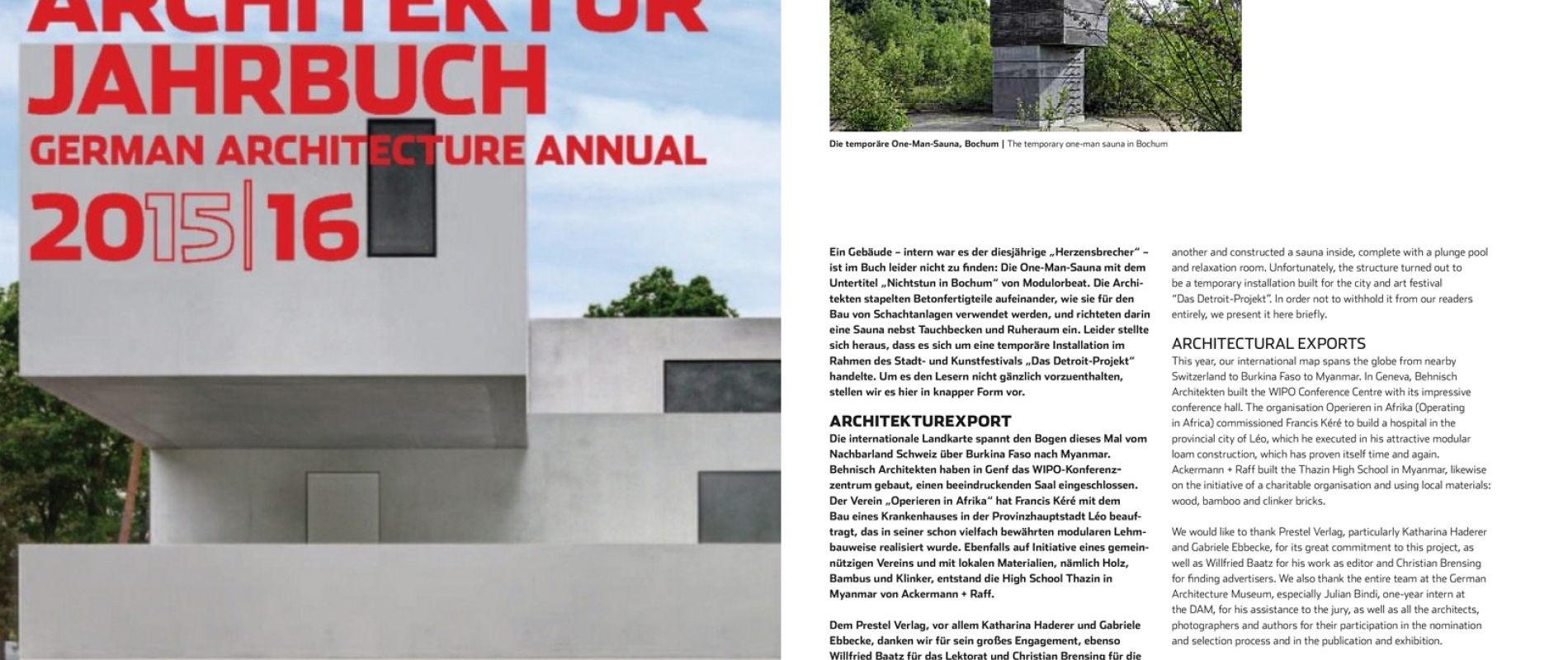 Leider hat es die Sauna nur ins Vorwort vom DEUTSCHEN ARCHITEKTUR JAHRBUCH 2015\16 des DAM geschafft,