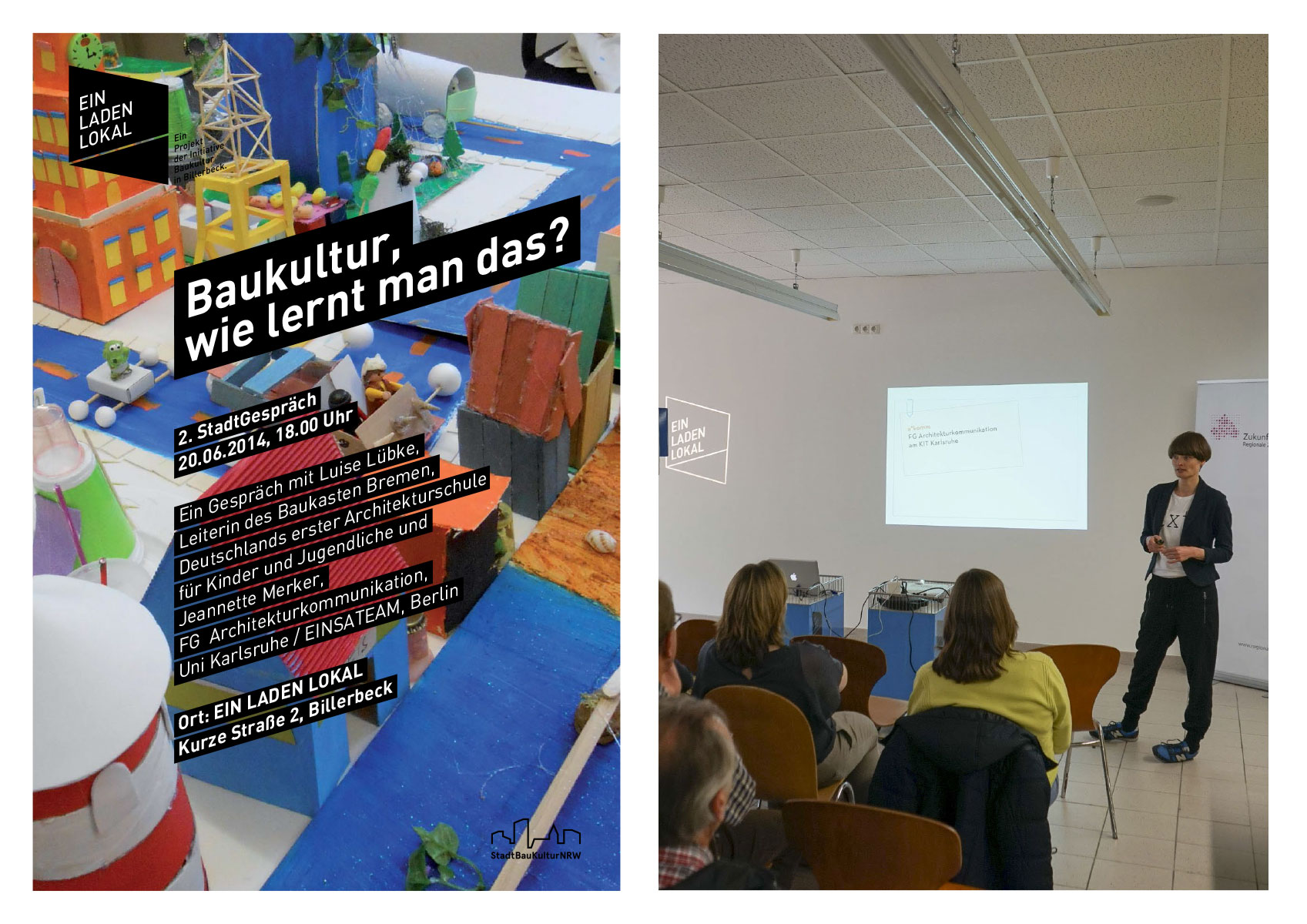 Ein leerstehendes Geschäft in der Innenstadt von Billerbeck wird zu EIN LADEN LOKAL. Im „Testbetrieb“ für das geplante "Informationszentrum Baukultur" der Billerbecker Initiative finden hier Baukulturveranstaltungen statt, die ausloten, was Baukultur im Münstlerland alles sein kann.