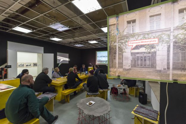 Als ein zentraler Anlaufpunkt der Grünen Hauptstadt Europas – Essen 2017 wurde das ehemalige „Haus der Begegnung“ und der Weberplatz für ein Jahr temporär bespielt werden. Besonderer Schwerpunkt lag auf der Einrichtung eines Informationszentrums im Erdgeschoss, der Qualifizierung des Übergangs zwischen Innen- und Aussenraum, sowie der Entwicklung von Initial-Ideen für den Weberplatz.