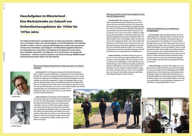 „HausAufgaben – Eine Werkstattreihe zur Zukunft von Einfamilienhausgebieten der 1950er bis 1970er Jahre“ ist ein Kooperationsprojekt der Stadt Dorsten, der Regionale 2016 und der StadtBauKultur NRW.