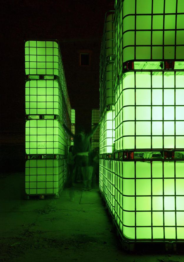 Leuchtende Kuben, visuelle Effekte, elektronische Beats: das sind die Elemente des Open-Air-Clubs Kubik. Die Basis der dynamischen Raum-, Licht- und Soundskulptur Kubik bilden handelsübliche Flüssigkeitscontainer, wie diese im Industriebedarf üblich sind. Durch die Nutzung als wiederverwendbarer Transportbehälter für Flüssiggüter im Logistik-Sektor, zeichnen sie sich durch Eigenschaften wie z.B. geringes Gewicht und optimierte Stapelbarkeit aus. In der Umnutzung werden sich diese Eigenschaften zu Nutze gemacht: Die einzelnen Wassertanks können als modulare in unterschiedlichen Formationen zu Plätzwänden und tribünenartigen Kulissen aufgebaut werden, mit Durchgängen und Umgängen, oder zu großen monolithischen Blöcken arrangiert werden.