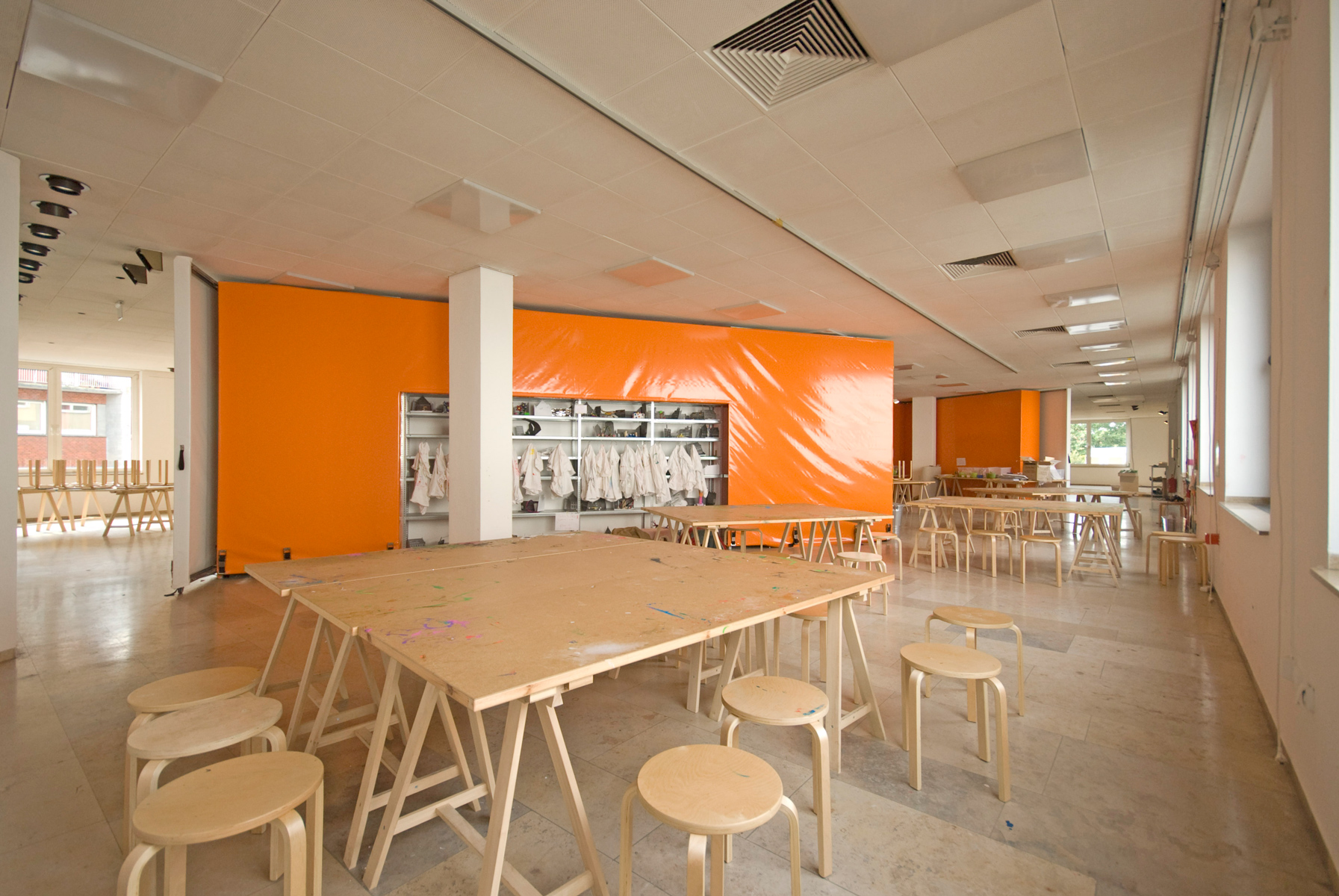 Im Rahmen der skulptur projekte münster 2007 wurde eine leerstehende Büroetage zu Kunstwerkstätten und Präsentationsräumen für das Vermittlungsprogramm der Veranstaltung umgenutzt. Ein Raumsystem aus modifizierten Stahlregalen, die partiell mit LKW-Folie verkleidet wurden, zoniert den Raum und definiert die Funktionsbereiche. Neben der Planung und Konzeption wurde das Projekt auch durch das Büro modulorbeat ausgeführt.