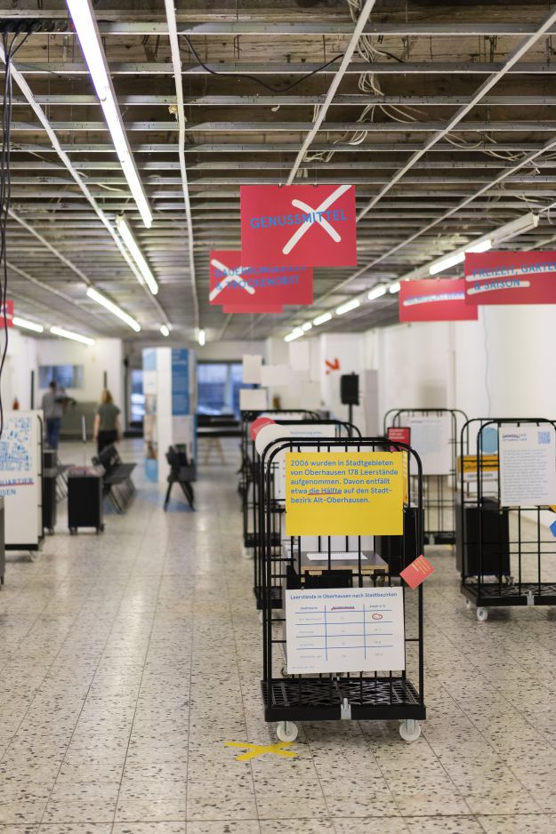 Im “Kreativ.Quartier Oberhausen-Mitte” treffen Künstler und Kreative auf aktuelle Fragen der Innenstadtentwicklung. Die Innenstadt Oberhausens leidet unter dem Strukturwandel des Einzelhandels: deutliche Leerstände in der Innenstadt sind die Folge. Erfahrungen aus anderen Städten zeigen, dass Künstler und Kreative aus allen 11 Sparten der Kultur- und Kreativwirtschaft großes Potenzial haben, die verlorengegangenen urbanen Qualitäten zum Teil ersetzen zu können. Deshalb eröffnet im Oktober und November 2018 der Supermarkt der Ideen. In diesem Aktionszeitraum wird ein Ladenlokal in der Oberhausener Innenstadt zum "Labor Marktstraße", in dem mit unterschiedlichen Akteuren daran gefeilt wird, wie man Eigentümer gewinnt und wie Netzwerke unterschiedlicher Akteure zu einer Belebung der Innenstadt beitragen können. Im Labor werden also kunst- und kulturgerechte Strategien und Instrumente entwickelt, um Kultur- oder Kreativunternehmer auf der Marktstraße anzusiedeln, eine GründerInnen-Landschaft aufzubauen und wenn möglich zu verstetigen. Das "Labor Marktstraße" arbeitet und präsentiert die Ergebnisse im Supermarkt der Ideen.