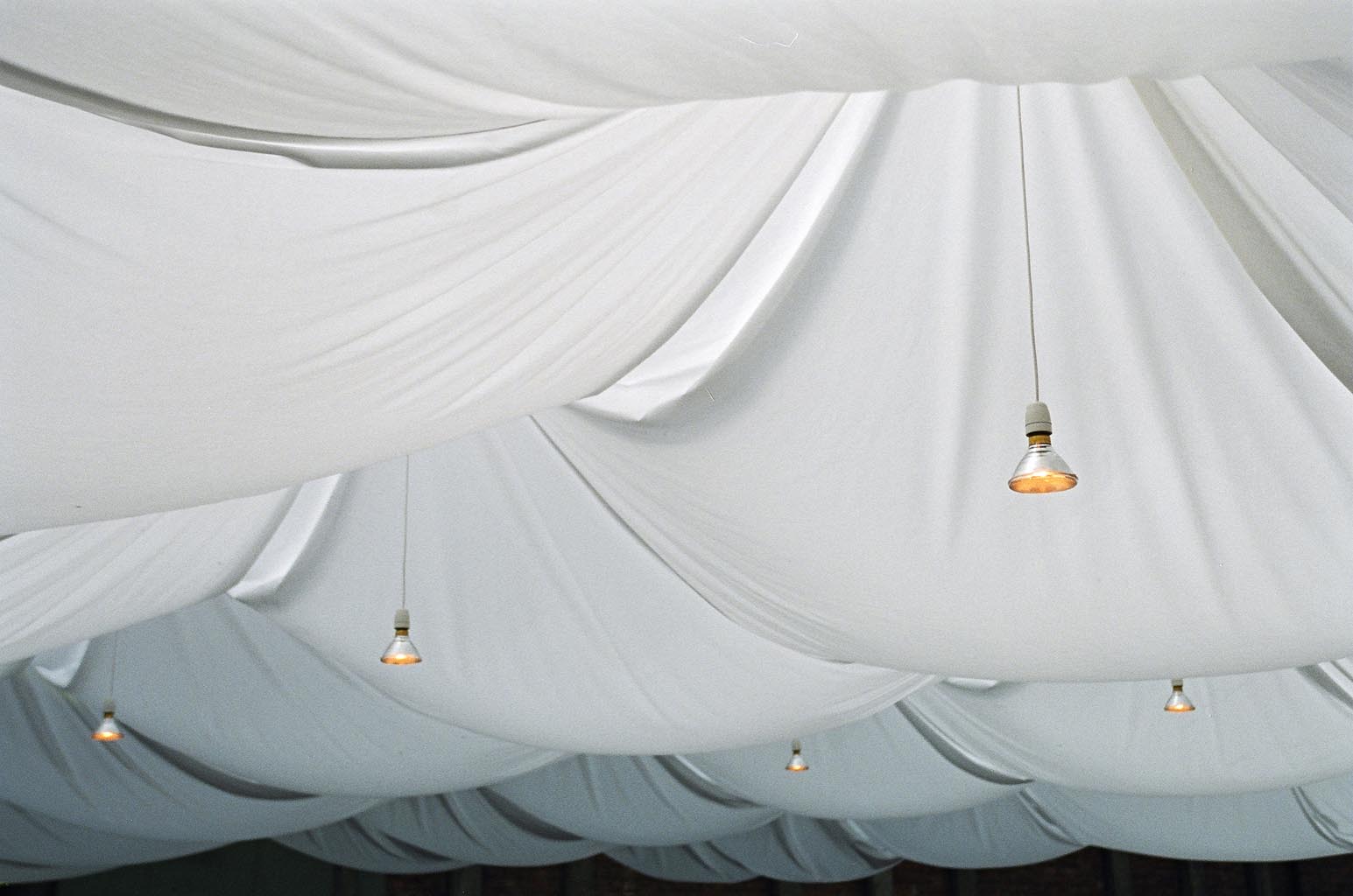 Temporäre Rauminstallation in der Halle 3B* der ehemaligen Osmo-Hallen in Münster. Material: ca. 1000qm weißer Stoff, Betonschalelemente , grauer Filz, schwarze Glasasche, Videoprojektion, Licht & Sound. Anlass der Installation war die Eröffnung der Regionale 2004, die mit dem Rahmenprogramm "Sternstunden im Hafen" gefeiert werden sollte.
