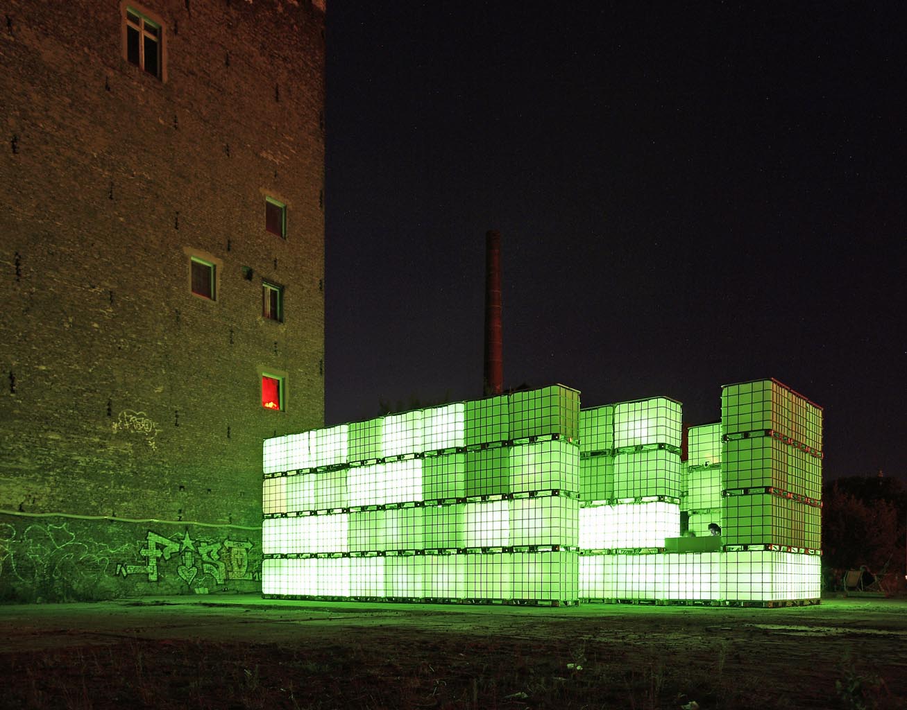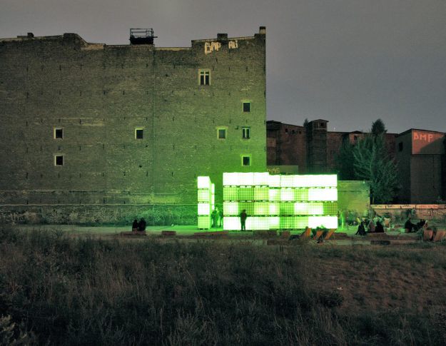Leuchtende Kuben, visuelle Effekte, elektronische Beats: das sind die Elemente des Open-Air-Clubs Kubik. Die Basis der dynamischen Raum-, Licht- und Soundskulptur Kubik bilden handelsübliche Flüssigkeitscontainer, wie diese im Industriebedarf üblich sind. Durch die Nutzung als wiederverwendbarer Transportbehälter für Flüssiggüter im Logistik-Sektor, zeichnen sie sich durch Eigenschaften wie z.B. geringes Gewicht und optimierte Stapelbarkeit aus. In der Umnutzung werden sich diese Eigenschaften zu Nutze gemacht: Die einzelnen Wassertanks können als modulare in unterschiedlichen Formationen zu Plätzwänden und tribünenartigen Kulissen aufgebaut werden, mit Durchgängen und Umgängen, oder zu großen monolithischen Blöcken arrangiert werden.